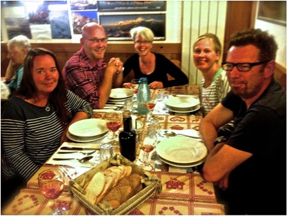 Rifugio Ferraro är alltid lika välkomnande och mysig, med sköna sängar och Fausta som sjunger i köket. Maten är genuine och likaså vinet. Vi prövar även lokala specialiteten Genepy, en likör som görs på en liten växt med samma namn och som växer i trakten på 2600 meters höjd. Värme, trötthet och röda kinder på alla oss.